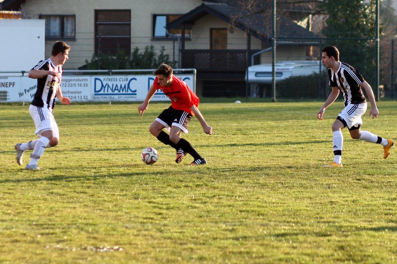 Bei trist-grauem Frühjahrswetter nahm das Spiel anfangs einen für Bischweier denkbar suboptimalen Verlauf. Nach einem Foulspiel präsentierte der Schiedsrichter Lukas Merkel die Rote Karte (39.), den Gästen gelang noch in derselben Minute ein Tor, in Unterzahl kämpfte Bischweier aber unverdrossen weiter und wurde schließlich mit einem Treffer von Sebastian Kopp belohnt (68.).